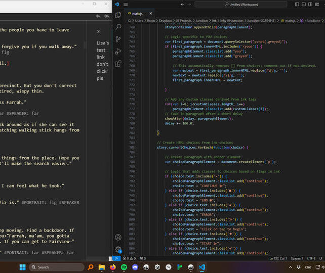 NPCの関係性、複雑なフラグ、多くの分岐を管理する。レベルデザインの制約にシナリオを合わせる。一見して理解できるフローチャートを利用し、プレイヤーが経験するストーリーの分岐と進捗を管理し、感情の動向とプロットの一貫性を確保する。